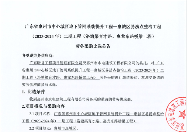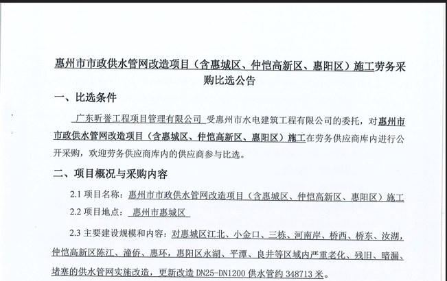 惠州市水電建筑工程有限公司成立于一九六四年四月,隸屬惠州市水務(wù)集團(tuán)有限公司,是一家國(guó)有綜合性施工企業(yè),主營(yíng)水利水電工程、房屋建筑、市政工程等施工業(yè)務(wù)。公司擁有水利水電工程施工總承包一級(jí)、建筑工程施工總承包一級(jí)、市政公用工程施工總承包一級(jí)、公路工程施工總承包三級(jí),公路路基、路面及建筑裝修裝飾專業(yè)承包二級(jí),環(huán)保工程、機(jī)電安裝、河湖整治、輸變電工程專業(yè)承包三級(jí)等經(jīng)營(yíng)資質(zhì)……